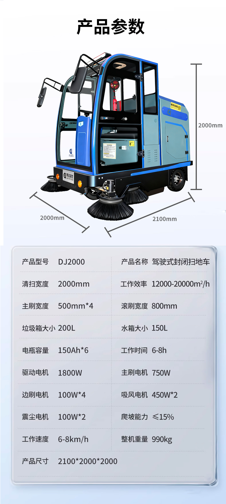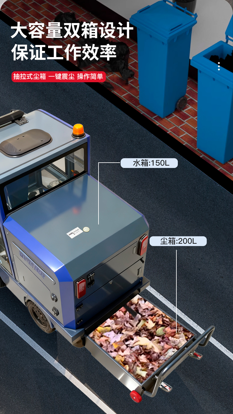 進口電控系統,擁有過流、欠壓保護,加重底盤,垃圾箱容量大,清潔能力大